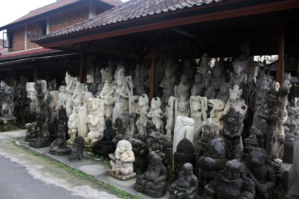 Jika Anda ingin melihat atau membeli sebuah karya yang terbuat dari batu saat Anda sedang berada di pulau Bali, maka Desa Batubulan yang berada di wilayah Gianyar adalah tempat yang tepat untuk anda mencari kerajinan yang terbuat dari batu ini. Anda juga akan melalui desa ini jika Anda sedang berkendara dari arah Denpasar menuju Ubud, patung yang ditampilkan merupakan patu yang berjenis, tokoh Buddha, setan dan tokoh-tokoh mitos yang lainnya, semua patung diukir di batu.