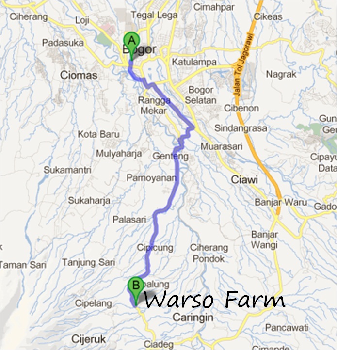 Lokasi Warso Farm : Desa Cihideung, Kec. Cipelang, Bogor