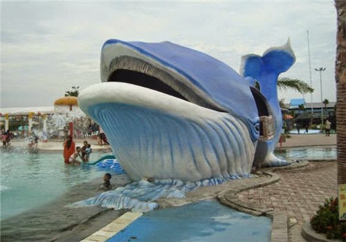 | Patung ikan paus di Gerbang Mas Bahari Waterpark |